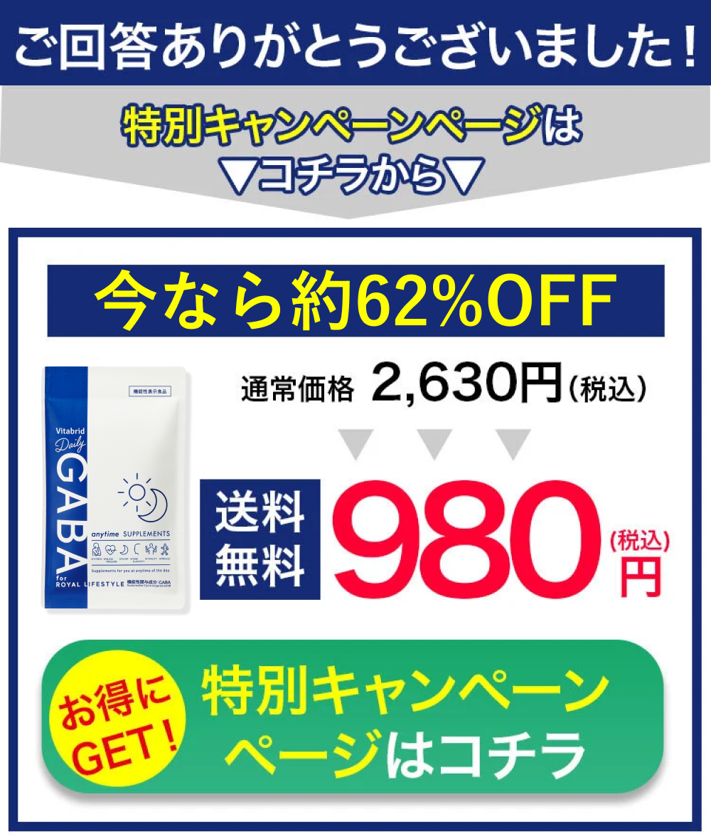 デイリーGABAは睡眠悩みのある私には、安心感があります。お守りみたいな。しっかり睡眠とって朝から活力を出して、色々挑戦していきたいですから。