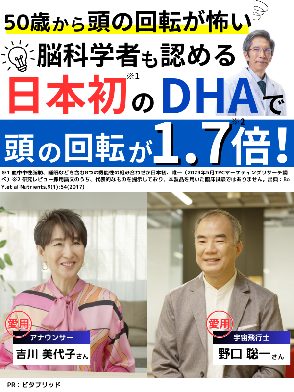 ※DHAには、中高年の認知機能の一部である、日常生活における数に関する情報の記憶と数・ことばに関する情報の判断や読み書きをサポートする機能があることが報告されています。